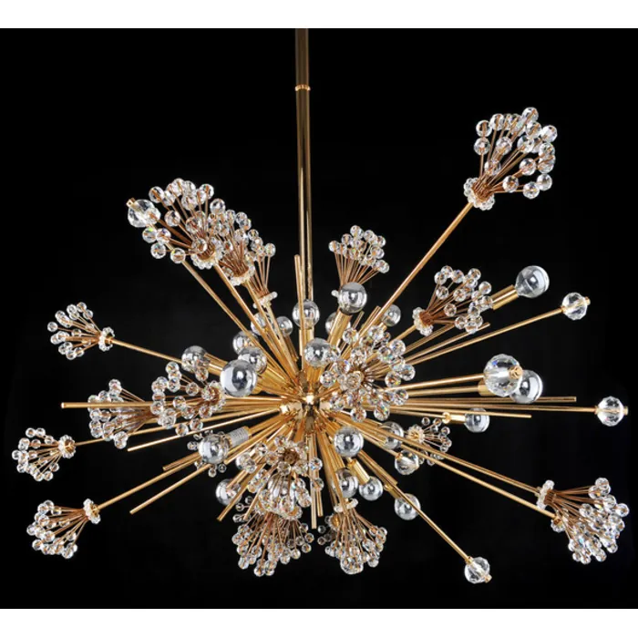 The Constellation Collection was inspired by the iconic chandeliers at Lincoln Center’s Metropolitan Opera House. The bursting lights are highlighted in Allegri’s exclusive Chrome finish and crowned with Clear Firenze crystal clusters and finials. This mi30 Light Oval PendantE12 CandelabraIncludes (3) 21" StemsDimmable: YesDimmer Type: Refer to bulb manufacturer for compatibilitySockets: 30Wattage: 40Lamp Type: E12 CandelabraBulbs Incl#: NoMax Height: 39