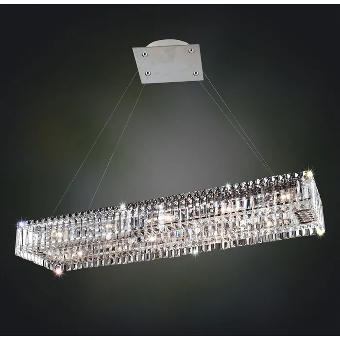 The Quantum Collection is a simplistically elegant interpretation of modern chandeliers. Each tier is a U-shape consisting of Clear Prism crystals tipped with Clear Square Stone crystals and finished in Allegri’s exclusive Chrome finish. With four shapes 43" Rectangular PendantE12 Candelabra0Dimmable: YesDimmer Type: Refer to bulb manufacturer for compatibilitySockets: 12Wattage: 40Lamp Type: E12 CandelabraBulbs Incl#: NoMax Height: 5