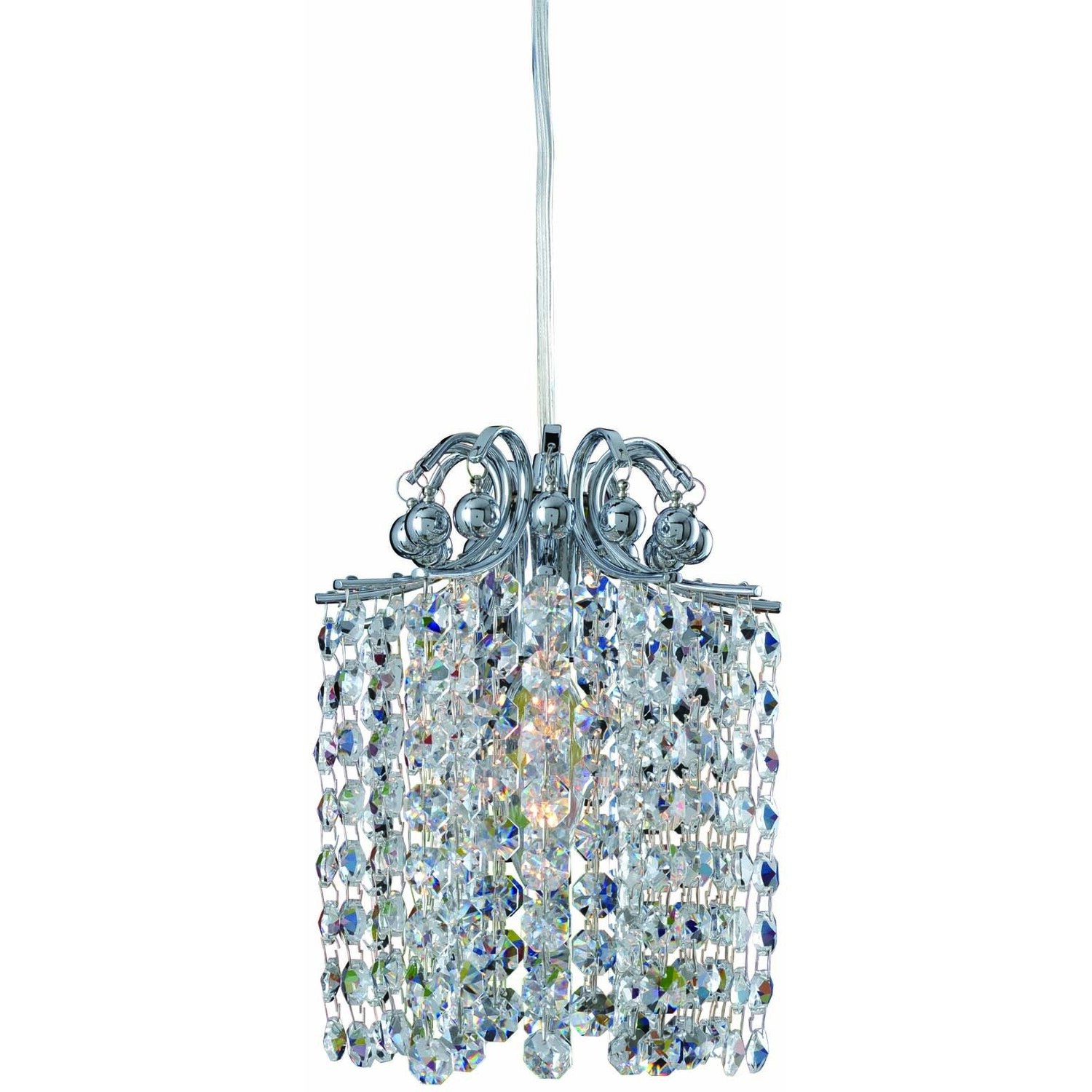 The Milieu Collection features cascades of octagon crystals. Strands of clear or colorful Firenze or Swarovski Elements crystals flow from a base, available in four designs, finished in Allegri’s exclusive Chrome. These versatile and timeless mini-pendant1 Light Mini PendantE12 Candelabra0Dimmable: YesDimmer Type: Refer to bulb manufacturer for compatibilitySockets: 1Wattage: 40Lamp Type: E12 CandelabraBulbs Incl#: NoMax Height: 9