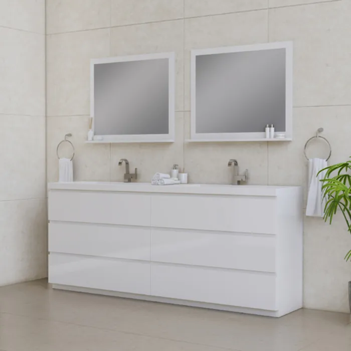Alya Bath Paterno 84" double modern bathroom vanity gives an updated modern look to any bathroom. This freestanding vanity offers great storage with a smooth soft-closing, fully functional six drawers