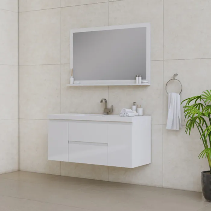 Alya Paterno 48 inch Modern Wall Mounted Bathroom Vanity, White AB-MOF48-W