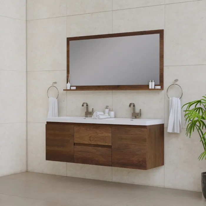 Alya Paterno 60 inch Double Modern Wall Mounted Bathroom Vanity, Rosewood AB-MOF60D-RW