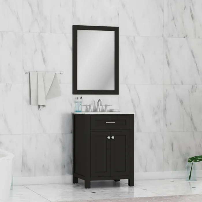 Alya Norwalk 24 In. Single Bathroom Vanity In Espresso With Carrera Marble Top And No Mirror HE-101-24-E-CWMT