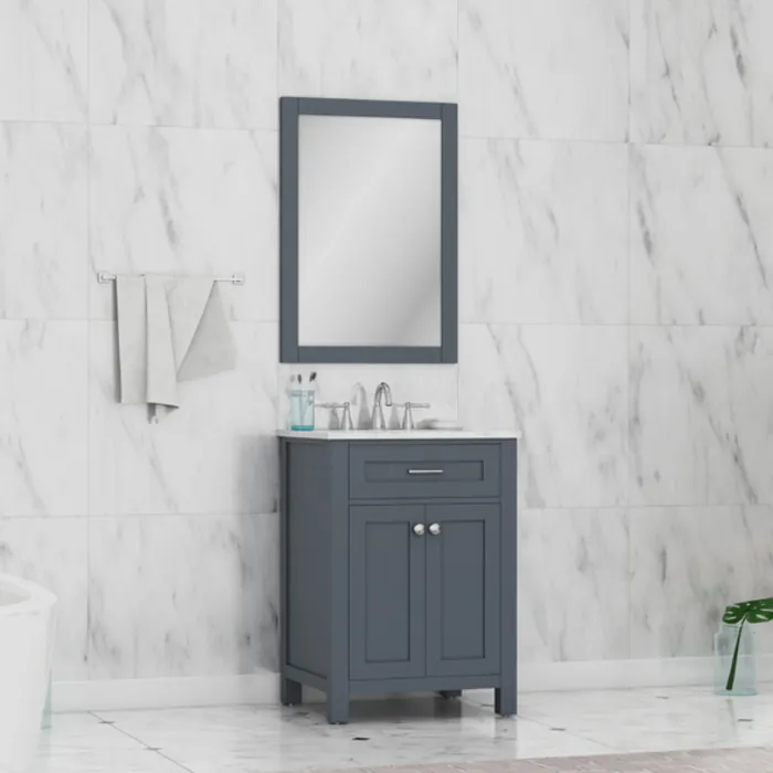 Alya Norwalk 24 In. Single Bathroom Vanity In Gray With Carrera Marble Top And No Mirror HE-101-24-G-CWMT