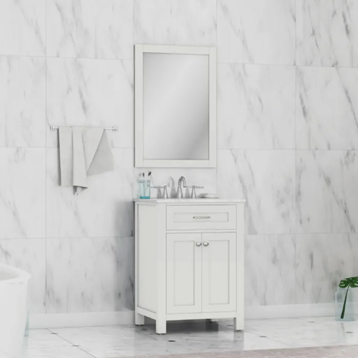 Alya Norwalk 24 In. Single Bathroom Vanity In White With Carrera Marble Top And No Mirror HE-101-24-W-CWMT