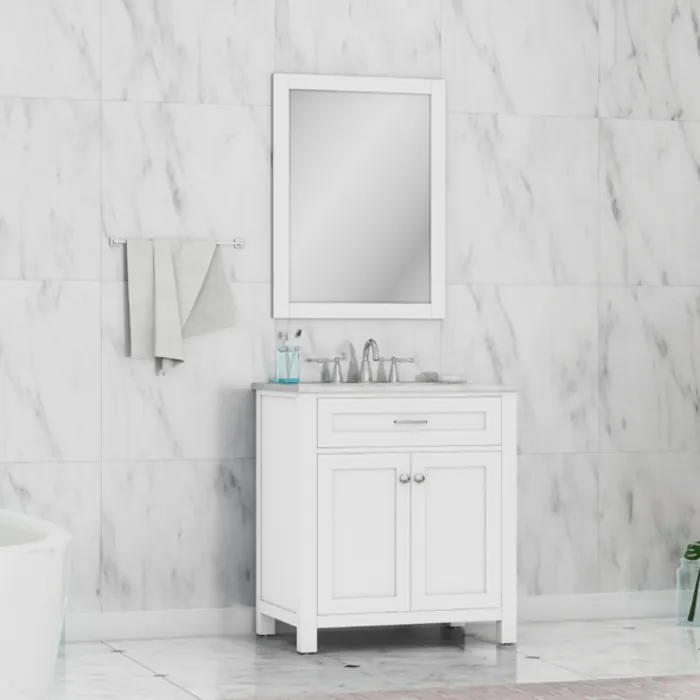 Alya Norwalk 30 inch Bathroom Vanity White with Carrera Marble Top HE-101-30-W-CWMT