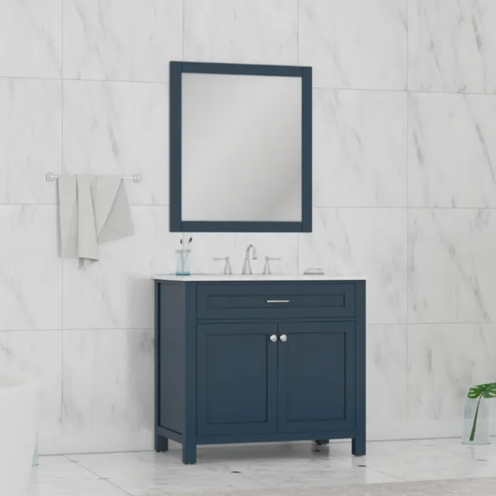 Alya Norwalk 36 inch Bathroom Vanity Blue with Carrera Marble Top HE-101-36-B-CWMT