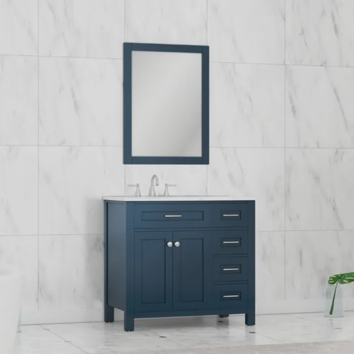 Alya Norwalk 36 inch Drawer Bathroom Vanity Blue with Carrera Marble Top HE-101-36-DR-B-CWMT