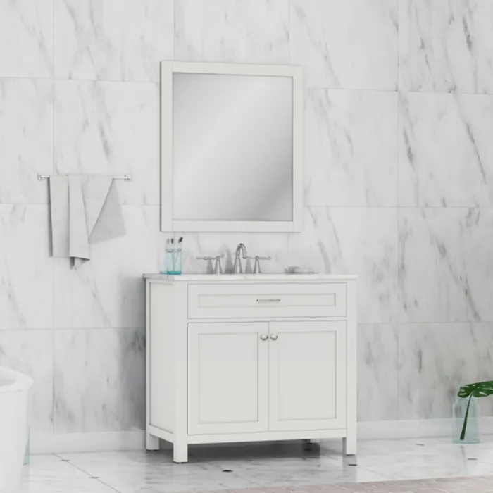 Alya Norwalk 36 In. Single Bathroom Vanity In White With Carrera Marble Top And No Mirror HE-101-36-W-CWMT