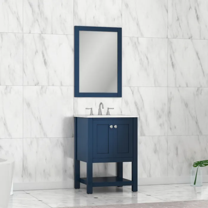Alya Wilmington 24 inch Bathroom Vanity Blue with Carrera Marble Top HE-102-24-B-CWMT