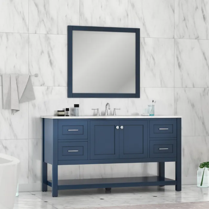 Alya Wilmington 60 inch Single Bathroom Vanity in Blue with Carrera Marble Top HE-102-60S-B-CWMT