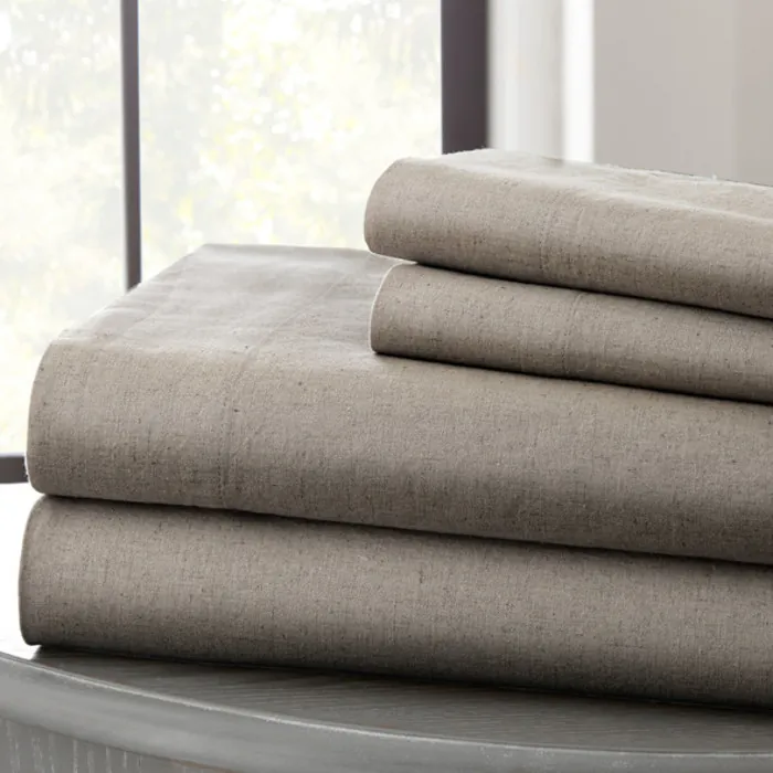 Amrapur Linen & Cotton 4 Piece Sheet Set Platinum C. King 1LINCTNG-PLT-CK