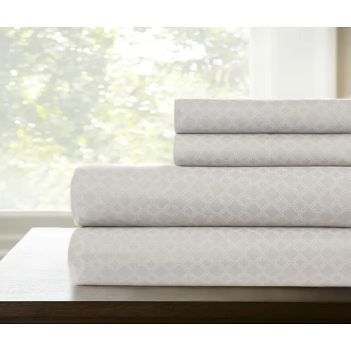 Amrapur 4-piece Lattice Printed Sheet Set Silver Cal King 1MFLATTG-SIL-CK