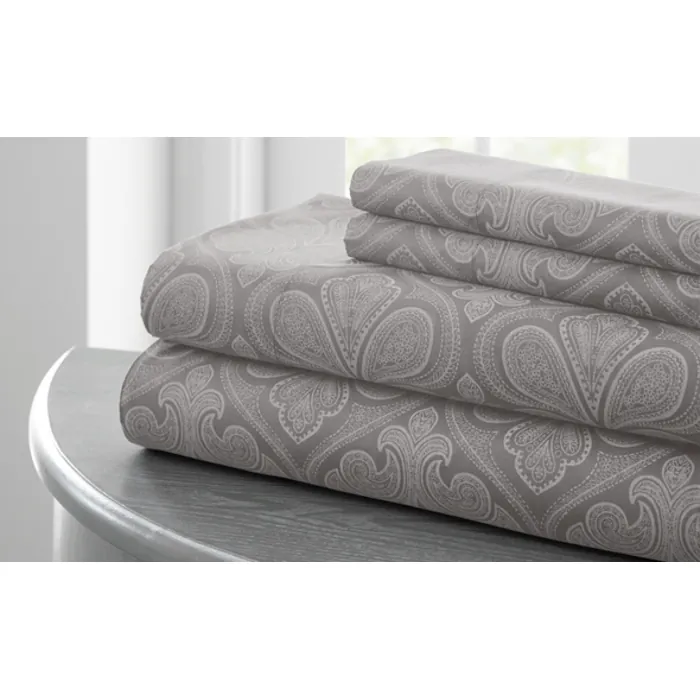 Amrapur Paisley Printed 4 Pc Sheet Set Dk Grey Queen 1MFWPTSG-GRY-QN