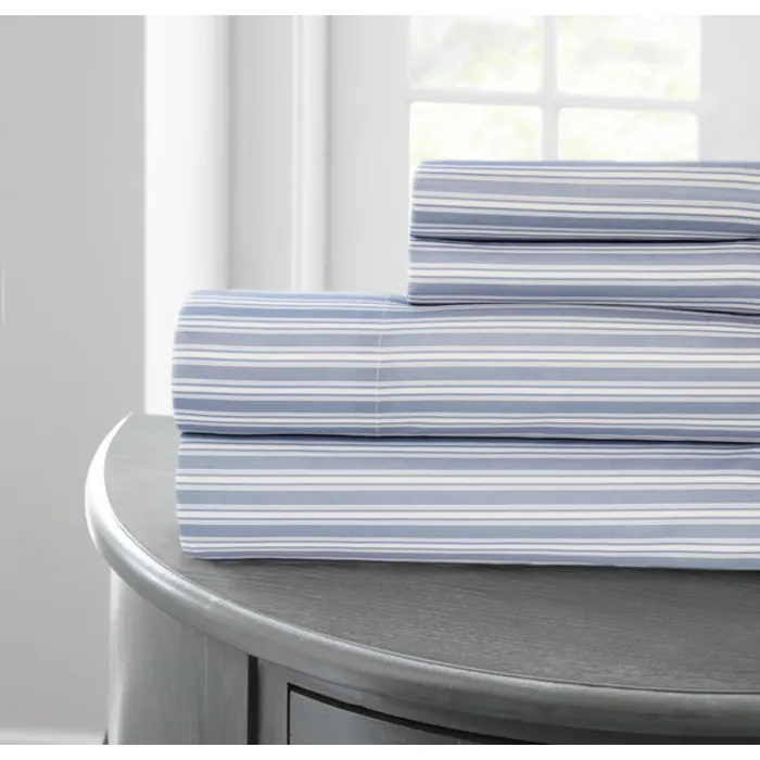 Amrapur Printed 4 Pc Sheet Set Racer Stripe Blue King 1PRTMFAG-RBL-KG