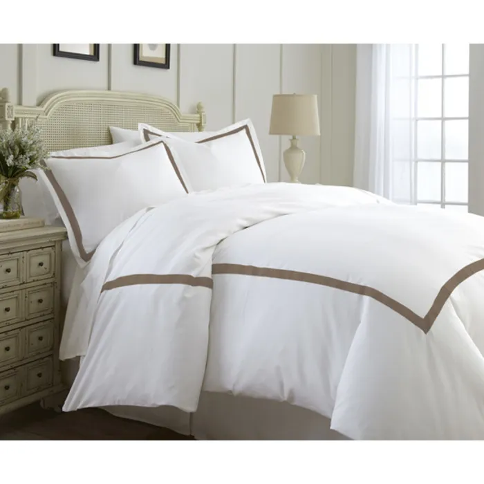 Add an elegant touch to your bedroom with this exquisite 600 thread count 3-piece duvet set. This set is available in a variety of colors that will perfectly complement your current bedroom decor. Soft and smooth the Combed cotton rich Duvet is embellished with satin band stitching for a classic hotel finish. This set is machine washable for easy care and repeated use