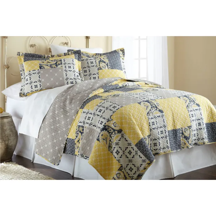 Give your bed a cozy facelift with this 100% Cotton Reversible Quilt Ensemble! Soft, aesthetically excellent, and perfect for implementing an easy seasonal upgrade, this terrific quilt set makes a perfect addition to any bedroom.