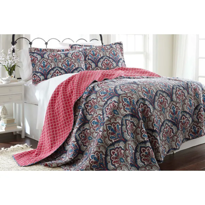 Amrapur 100% Cotton 3 Pc Printed Reversible Quilt Sets Sanya King 3CTNQLTG-SNY-KG