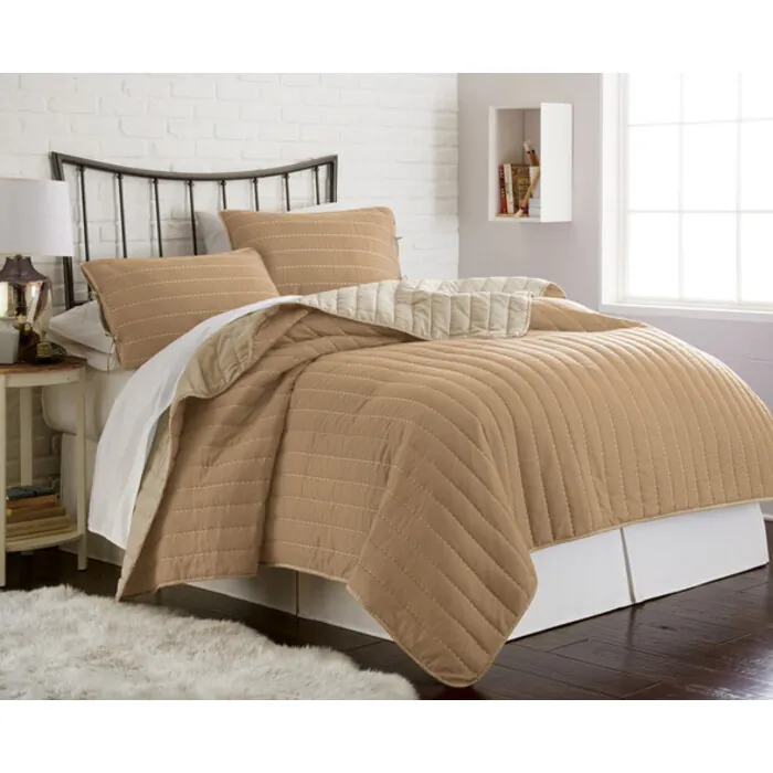Amrapur 3-piece Whip Stich Solid Reversible Coverlet Set Cream/brown Queen 3CVRWHPG-CBR-QN