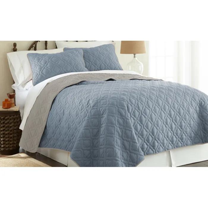 Amrapur 3-piece Lattice Reversible Coverlet Set Denim/silver Queen 3CVTLTSG-DNS-QN