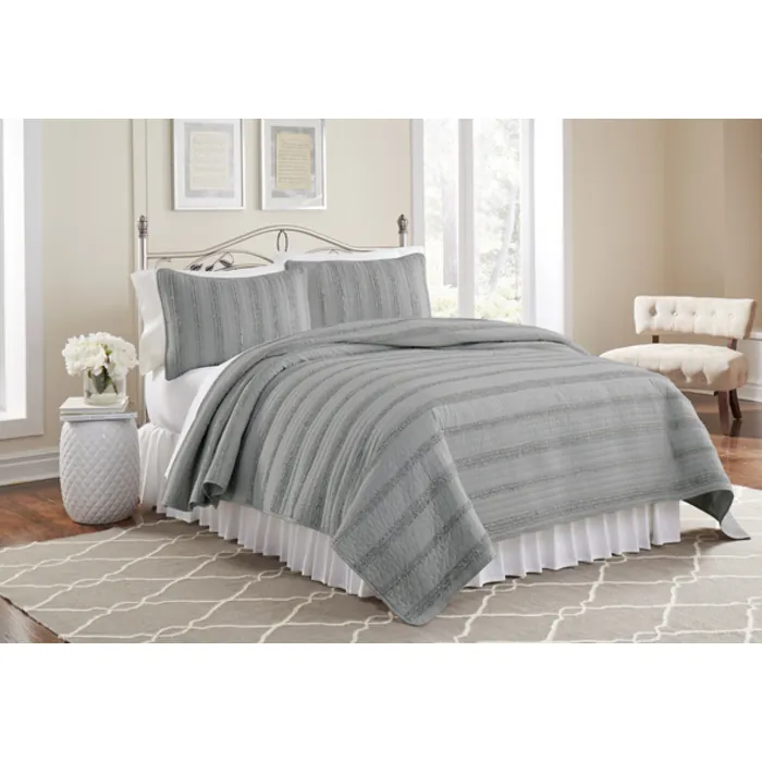 Amrapur 2 Pc Ruffled Quilt Sets- Waves Gray Twin 3MFRFWVG-GRY-TN
