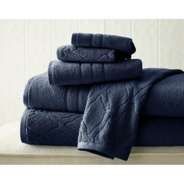 Amrapur 6 Piece Jacquard/solid Towel Set Chain Navy 56CHNTLG-NVY-ST