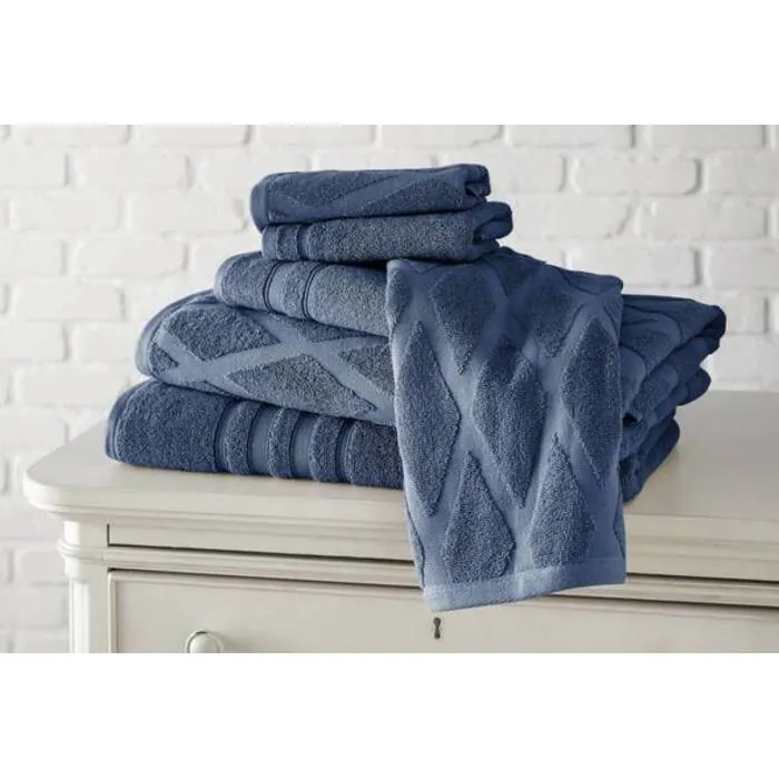Amrapur 6 Piece Cotton Jacquard Towel Set Diamond Navy Standard 56DMDTLG-NVY-ST