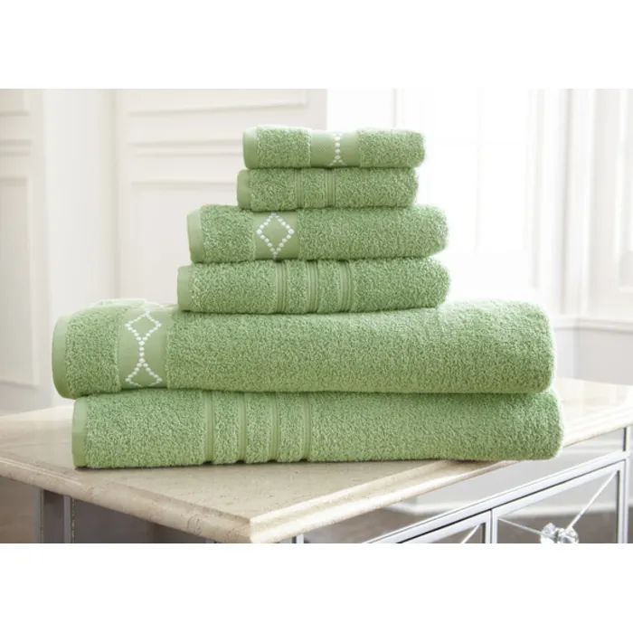 Amrapur 6 Pc 100% Cotton Towels With Diamond Embroidered Sage/ivory Standard 56EMDOTS-SGE-ST