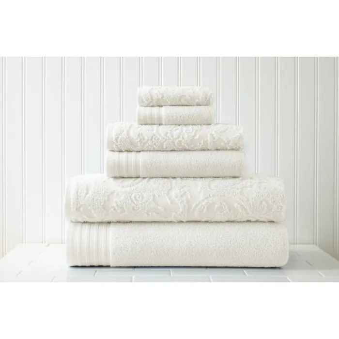 Amrapur 6 Piece Jacquard/solid Towel Set Leaf Swirl Ivory 56JACQLS-IVY-ST