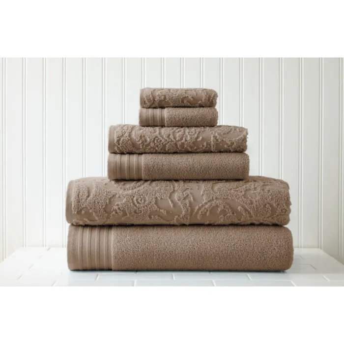 Amrapur 6 Piece Jacquard/solid Towel Set Leaf Swirl Mocha 56JACQLS-MOC-ST