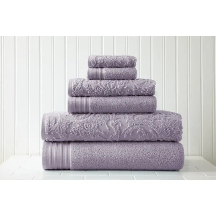Amrapur 6 Piece Jacquard/solid Towel Set Leaf Swirl Violet 56JACQLS-VIO-ST