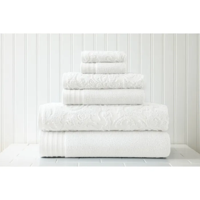Amrapur 6 Piece Jacquard/solid Towel Set Leaf Swirl White 56JACQLS-WHT-ST