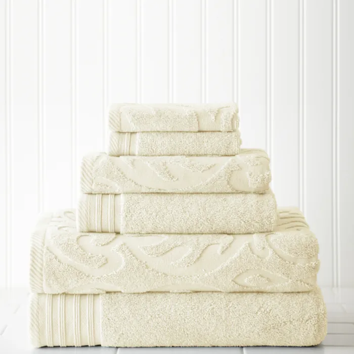 Amrapur 6 Piece Jacquard/solid Towel Set-medallion Swirl Ivory 56JACQMS-IVY-ST