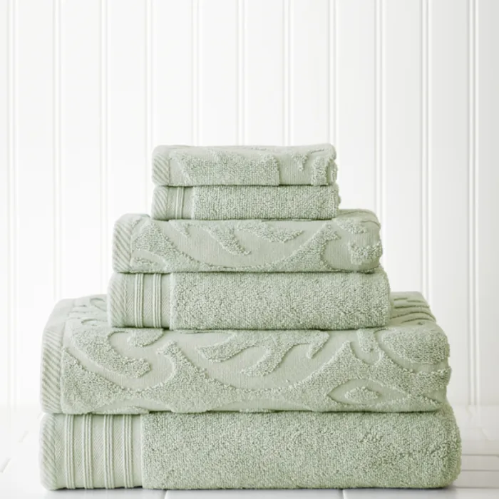 Amrapur 6 Piece Jacquard/solid Towel Set-medallion Swirl Soft Jade 56JACQMS-JDE-ST