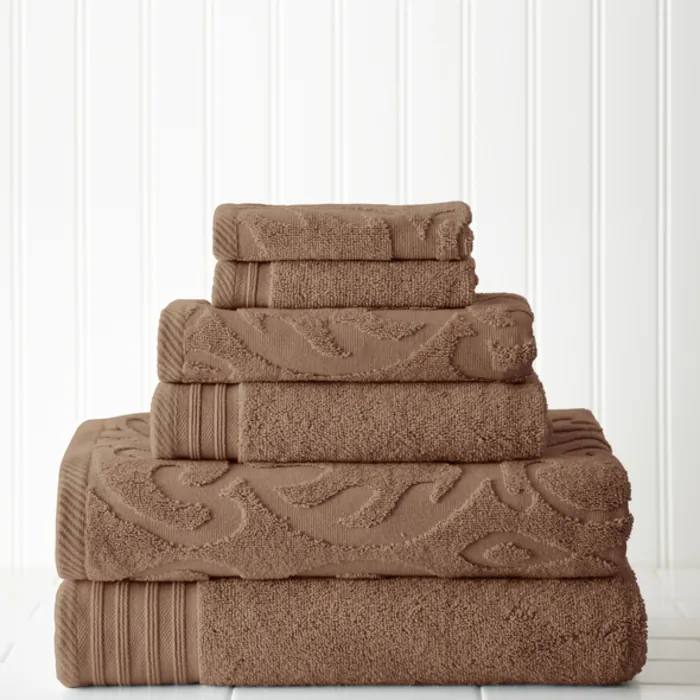 Amrapur 6 Piece Jacquard/solid Towel Set-medallion Swirl Mocha 56JACQMS-MOC-ST