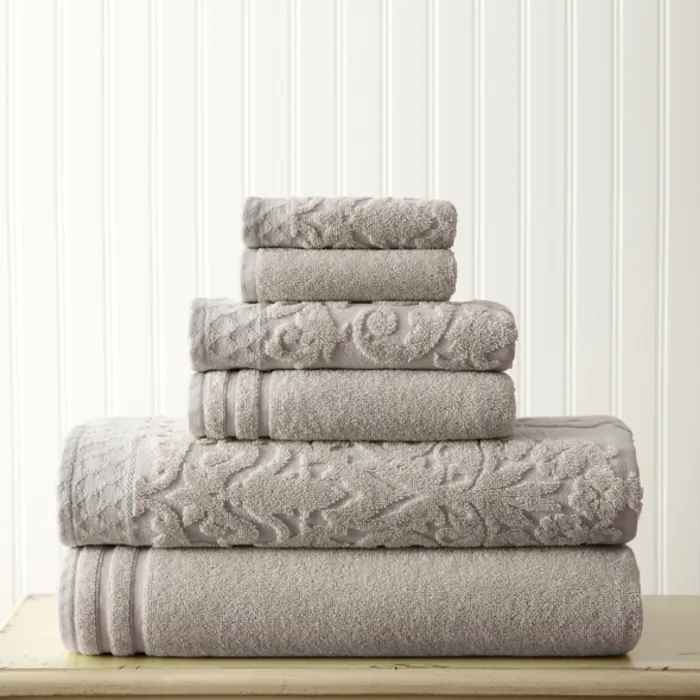 Amrapur Damask Jacquard Towels With Embellished Border 6 Piece Set Gray 56JQJQBG-GRY-ST