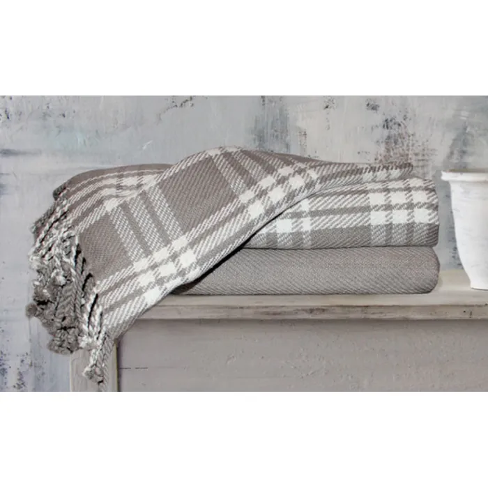 Amrapur 2 Pack 100% Cotton Throws - Plaid- Ivory/grey 5CNTRPLD-IVG-ST
