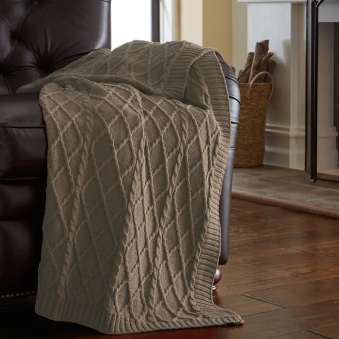 Amrapur 100% Cotton Oversized Cable Diamond Knit Throws Taupe 5HCBL478-SND-ST
