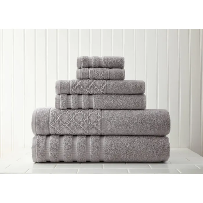 Amrapur 6-piece Towel Set With Velour Diamond Jacquard Border Grey 5JQDMNDG-GRY-ST