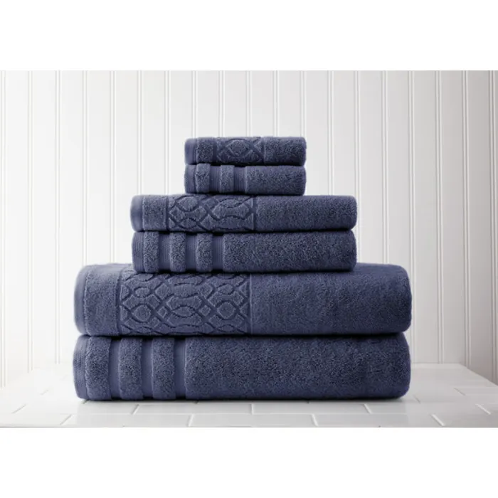 Amrapur 6-piece Towel Set With Kiev Chain Jacquard Border Indigo 5JQKCHNG-IND-ST