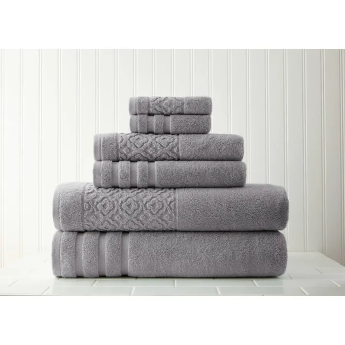 Amrapur 6-piece Towel Set With Trellis Jacquard Border Grey 5JQTRLSG-GRY-ST