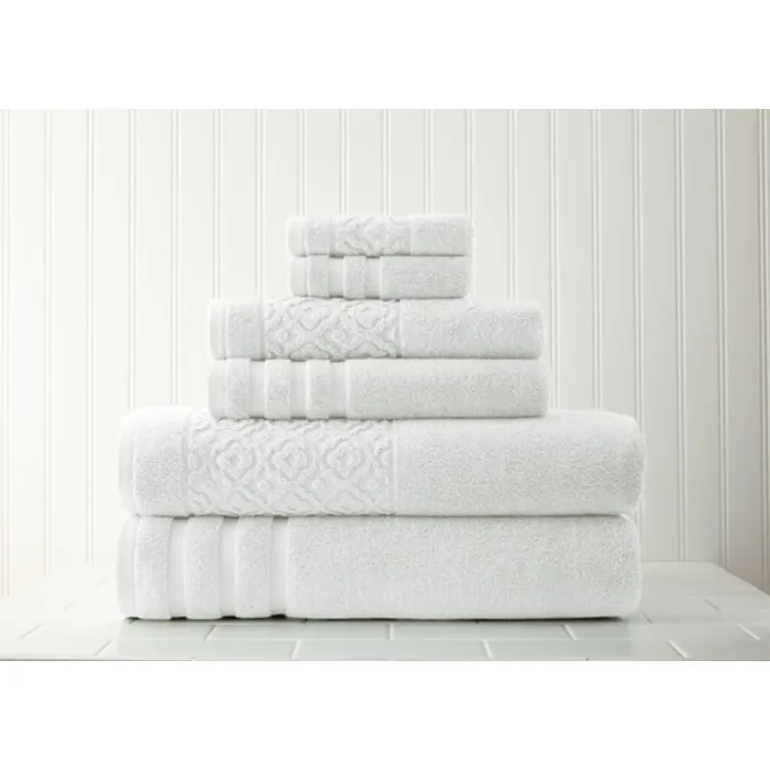 Amrapur 6-piece Towel Set With Trellis Jacquard Border White 5JQTRLSG-WHT-ST