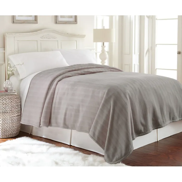 Amrapur Plush Damask Stripe Blanket Grey Full/queen 5STRBLKG-GRY-QN