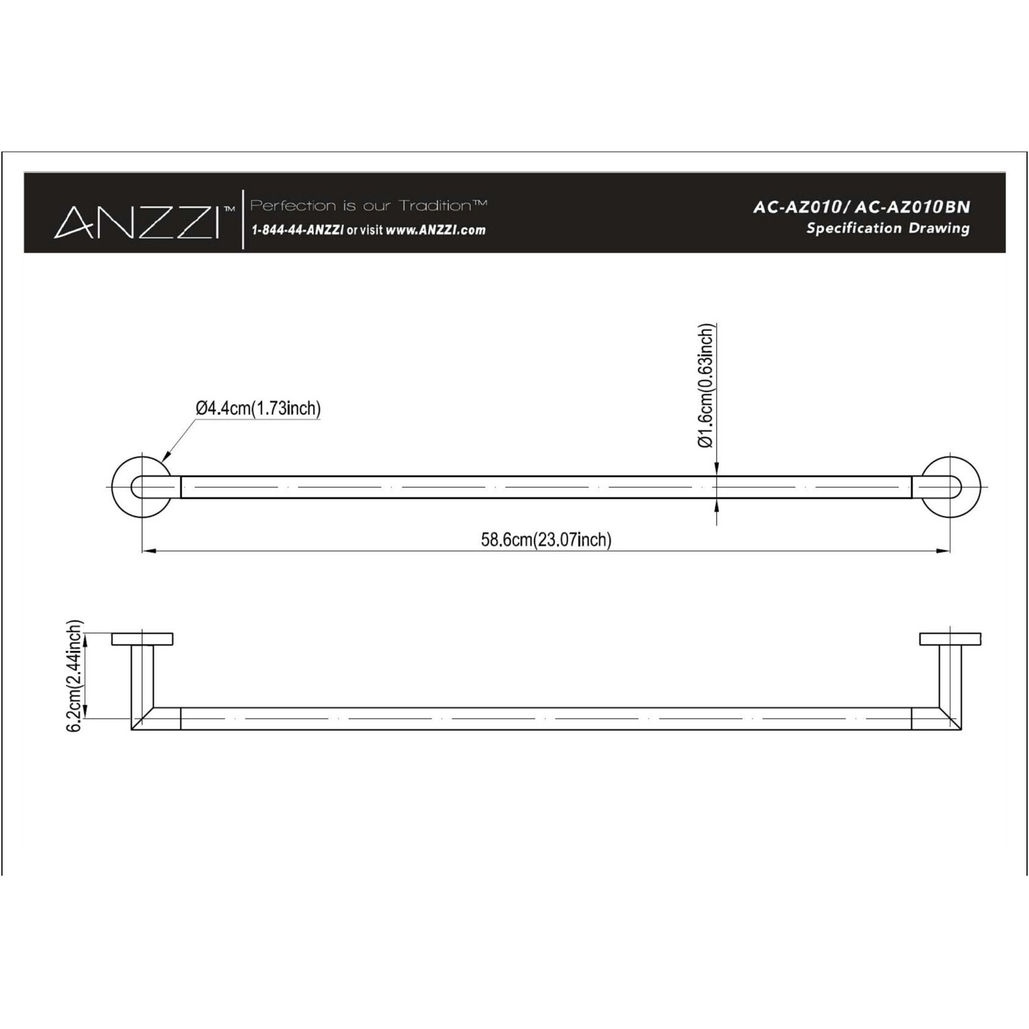 ANZZI bathroom hardware is crafted using RHINO ALLOY certified modern century stainless steel and zinc materials for reliable durability and superior performance. The inspired trending European design is a seamless compliment to any modern or contemporary bathroom décor. This ANZZI wall mounted Caster 2 Series Towel Bar is cast in a brilliantly striking ANZZI Lustrous Polished Chrome finish.Lustrous Polished Chrome finishRHINO ALLOY certified Ever-Shine Stainless Steel and Zinc constructionBrilliant Scratch Resistant SurfaceEasy wall mounted installation; hardware includedModern European inspired design brought to life through precision German engineeringSingle towel barAll mounting hardware includedShips from factory within 24 hours once order is processedLifetime WarrantyTo speak to a knowledgeable and dedicated ANZZI specialist simply call 1-844-44-ANZZI or visit us on the web at www.ANZZI.com