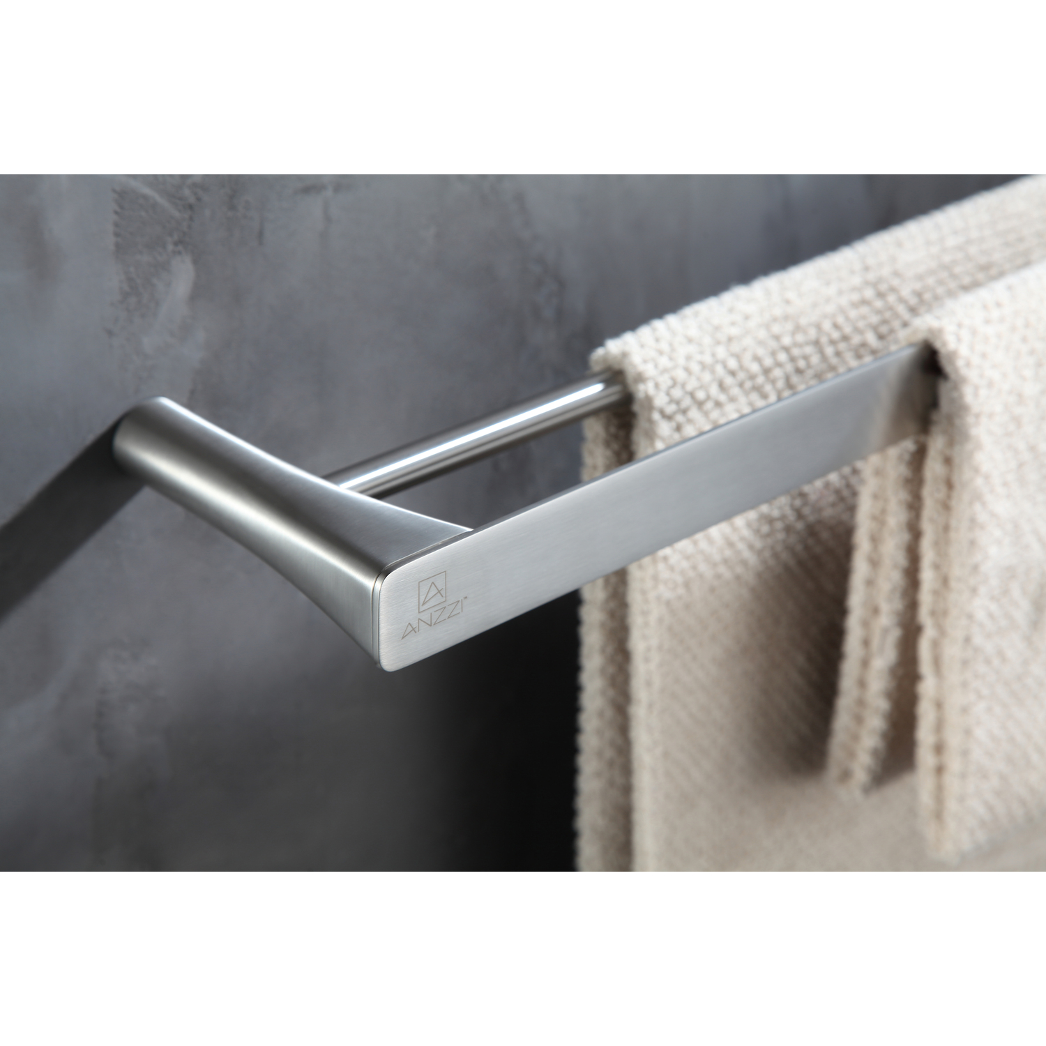 ANZZI bathroom hardware is crafted using Rhino Alloy certified modern century stainless steel and zinc materials for reliable durability and superior performance. The inspired trending European design is a seamless compliment to any modern or contemporary bathroom decor. This ANZZI wall mounted Caster 3 Series towel bar is cast in a brilliantly striking ANZZI traditional brushed nickel finish.Traditional brushed nickel finishRhino Alloy certified ever-shine stainless steel and zinc constructionBrilliant scratch resistant surfaceEasy wall mounted installation; hardware includedModern European inspired design brought to life through precision German engineering25.13 in. overall lengthMounting hardware includedShips from factory within 24 hours once order is processedLifetime WarrantyTo speak to a knowledgeable and dedicated ANZZI specialist simply call 1-844-44-ANZZI or visit us on the web at www.ANZZI.com