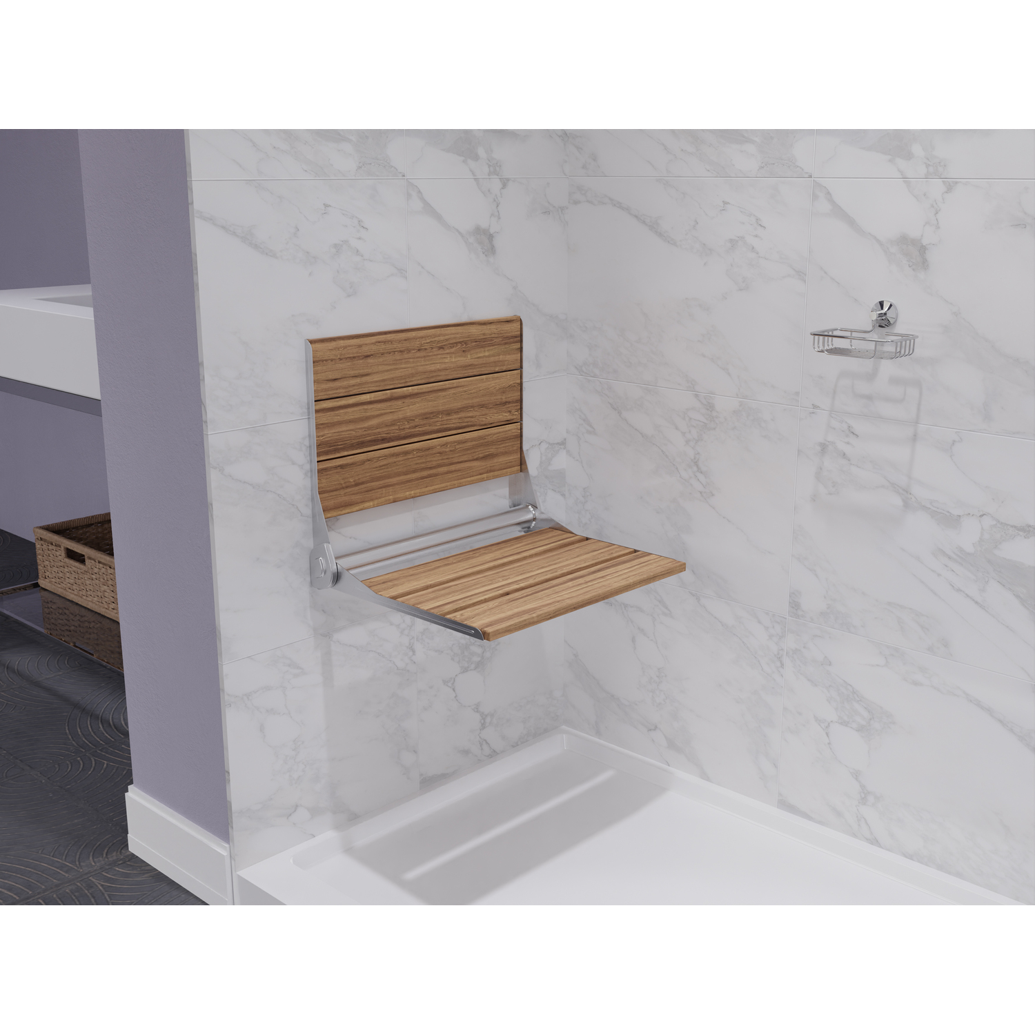 ANZZI offers a safe and comfortable seating solution for any luxury bath or shower. The ANZZI Saxon shower seat is crafted using all natural teak woods and RHINO ALLOY certified copper hardware and trim. When not in used the Saxon shower seat can be folded up to maximize until it’s ready to be used again. Add an extra layer of luxury to your daily shower routine with the ANZZI Saxon wall mounted shower seat.Like what you see? You can make this bathroom suite a reality with ANZZIALSO AVAILABLE FOR PURCHASE (Search #) : Shower Door (SD-AZ8077-02CH), Shower Panel (SP-AZ078SS), Smart Bidet (TL-STSF851WH), Console Sink (CS-FGC001-BN), LED Mirror (BA-LMDFXBT005WH), Sink Faucet (L-AZ012CH), Shower Base (SB-AZ103C)FOLDS UP - Folds up and out of the way when not in useWEIGHT CAPACITY - Supports up to 350 lbs.DIMENSIONS: 17 x 17 in.ADA COMPLIANTNATURAL TEAK WOOD - Crafted using natural tea wood and aluminum hardwarePolished Chrome finishWALL MOUNTED - Direct to stud wall mounted installationLONG LASTING - Rust and Scratch Resistant hardwareALL HARDWARE INCLUDED - Professional Installation RecommendedShips from factory within 24 hours once order is processedTo speak to a knowledgeable and dedicated ANZZI specialist simply call 1-844-44-ANZZI or visit us on the web at www.ANZZI.com