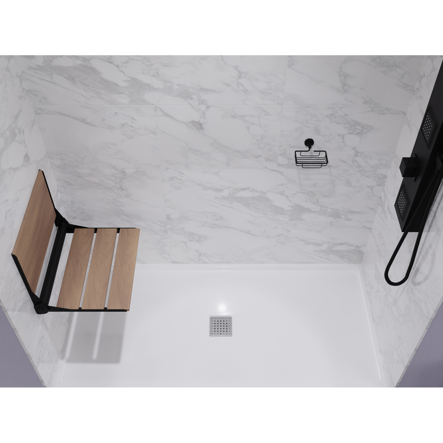 ANZZI offers a safe and comfortable seating solution for any luxury bath or shower. The ANZZI Saxon shower seat is crafted using all natural teak woods and RHINO ALLOY certified copper hardware and trim. When not in used the Saxon shower seat can be folded up to maximize until it’s ready to be used again. Add an extra layer of luxury to your daily shower routine with the ANZZI Saxon wall mounted shower seat.Like what you see? You can make this bathroom suite a reality with ANZZIALSO AVAILABLE FOR PURCHASE (Search #) : Shower Door (SD-AZ8077-02MB), Shower Panel (SP-AZ078MB), Smart Bidet (TL-STSF851WH), Console Sink (CS-FGC001-MB), LED Mirror (BA-LMDFXBT005WH), Sink Faucet (L-AZ012MB), Shower Base (SB-AZ103C)FOLDS UP - Folds up and out of the way when not in useWEIGHT CAPACITY - Supports up to 350 lbs.DIMENSIONS: 17 x 17 in.ADA COMPLIANTNATURAL TEAK WOOD - Crafted using natural teak wood and aluminum hardwareMatte Black finishWALL MOUNTED - Direct to stud wall mounted installationLONG LASTING - Rust and Scratch Resistant hardwareALL HARDWARE INCLUDED - Professional Installation RecommendedShips from factory within 24 hours once order is processed
