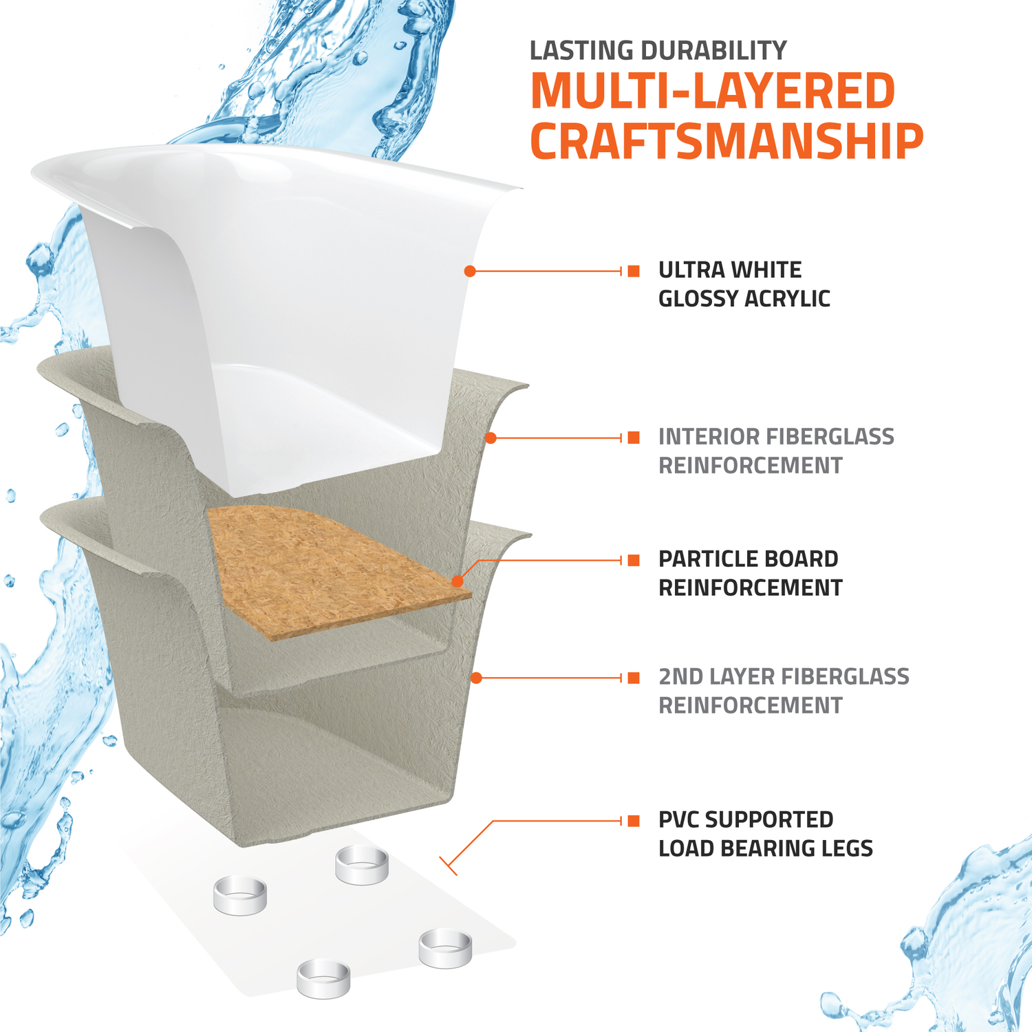 - SOAKING BATHTUB - Non-jetted deep soaking bathtub that’s easy to install. No need to run electrical wiring.