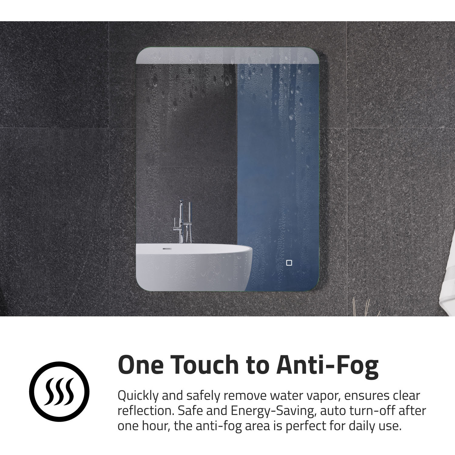 Get a crisp and clear reflection like you’ve never seen before! This mirror is copper free, so it delivers amazing visual clarity while resisting corrosion. The energy-efficient LED light strip creates a warm ambience while providing ideal illumination for doing makeup, shaving, or your favorite skin care routine. Color temperature easily adjusts to the level you prefer. A built-in defogger keeps the glass perfectly clear even after a long, hot shower — no need to wipe it down when you’re done!