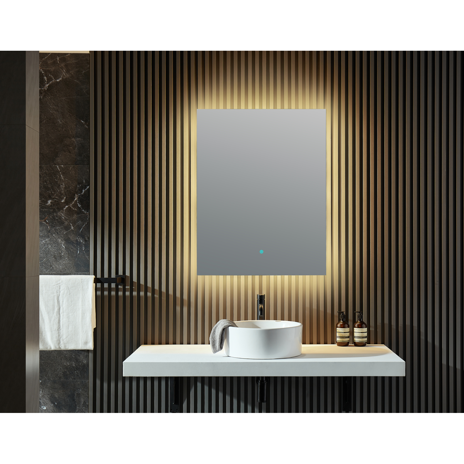 Like to sing in the shower? Just sync up your mobile device to the Bluetooth speaker built into our Stellar LED mirror and you’ll be accompanied by your favorite playlist! This mirror’s soft, indirect lighting dims to the level you want at the touch of a button, while the built-in defogger keeps the glass clear and free of condensation.5mm polished silver mirror is Rhino Alloy-certified and delivers amazing visual claritySturdy, long-lasting steel construction3000K LED strip bathes your bathroom in a soft, warm lightDefogger clears condensation from mirrorDimmer lets you adjust light to your preferred levelBluetooth speaker syncs with your mobile deviceSecure 1.6m hardwire connectionDimensions: 36 in. H x 28 in. WLimited lifetime warrantyGet it fast — ships from warehouse within 24 hours of order processingTo speak to a knowledgeable and dedicated ANZZI specialist simply call 1-844-44-ANZZI or visit us on the web at www.ANZZI.com